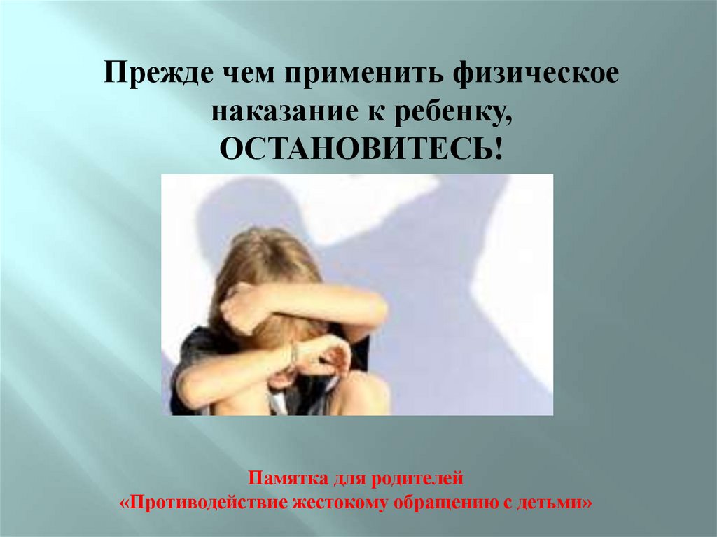 Памятка для родителей«Противодействие жестокому обращению с детьми»