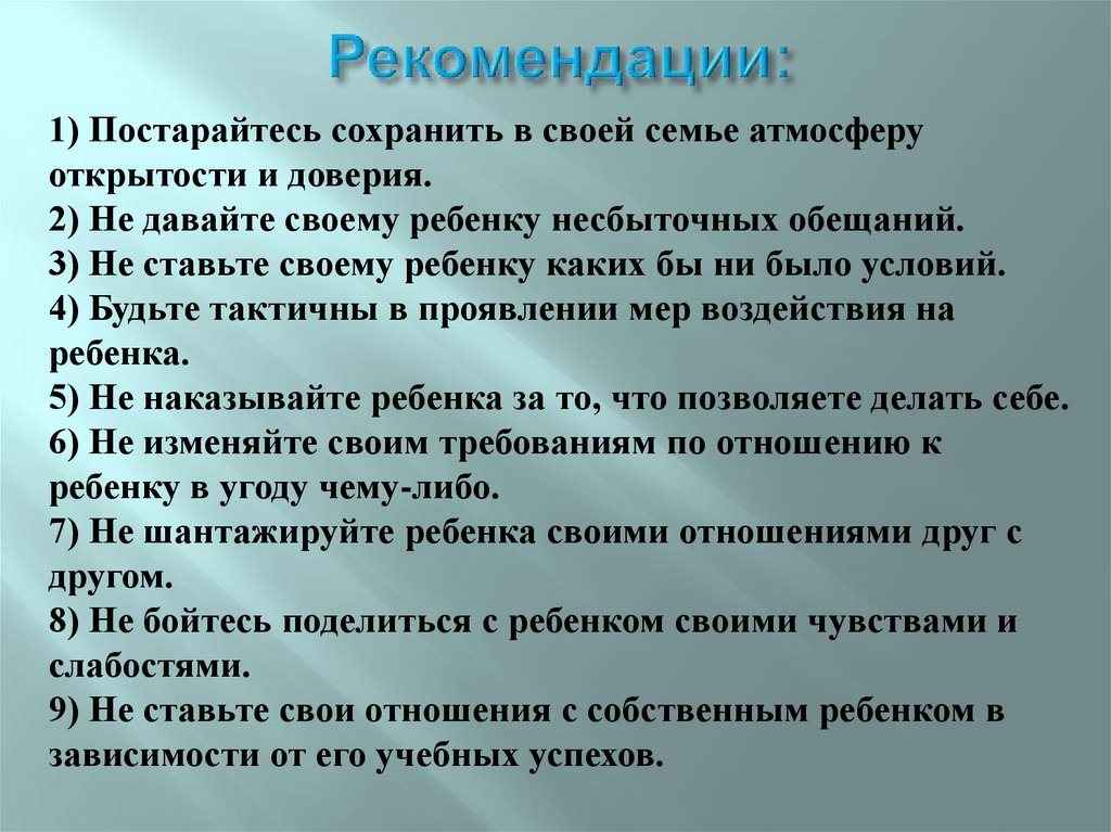 1) Постарайтесь сохранить в своей семье атмосферуоткрытости и доверия.