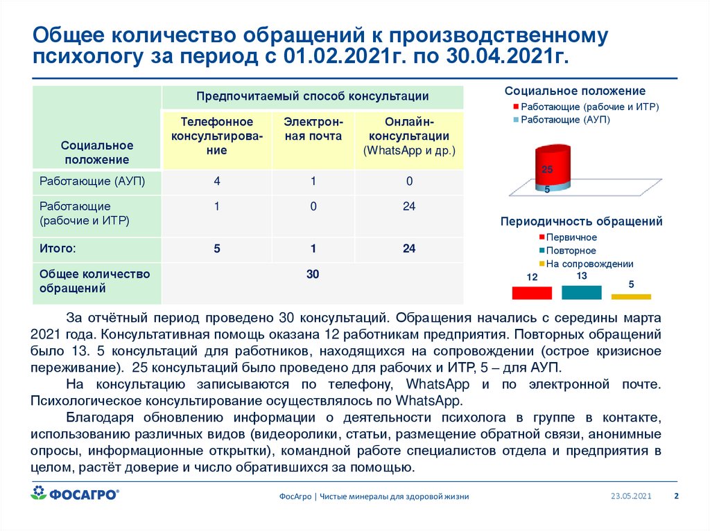 2021 года. Консультативная помощь оказана 12 работникам предприятия. Повторных обращений