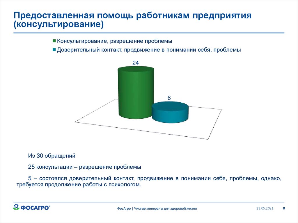 переживание). 25 консультаций было проведено для рабочих и ИТР, 5 – для АУП.