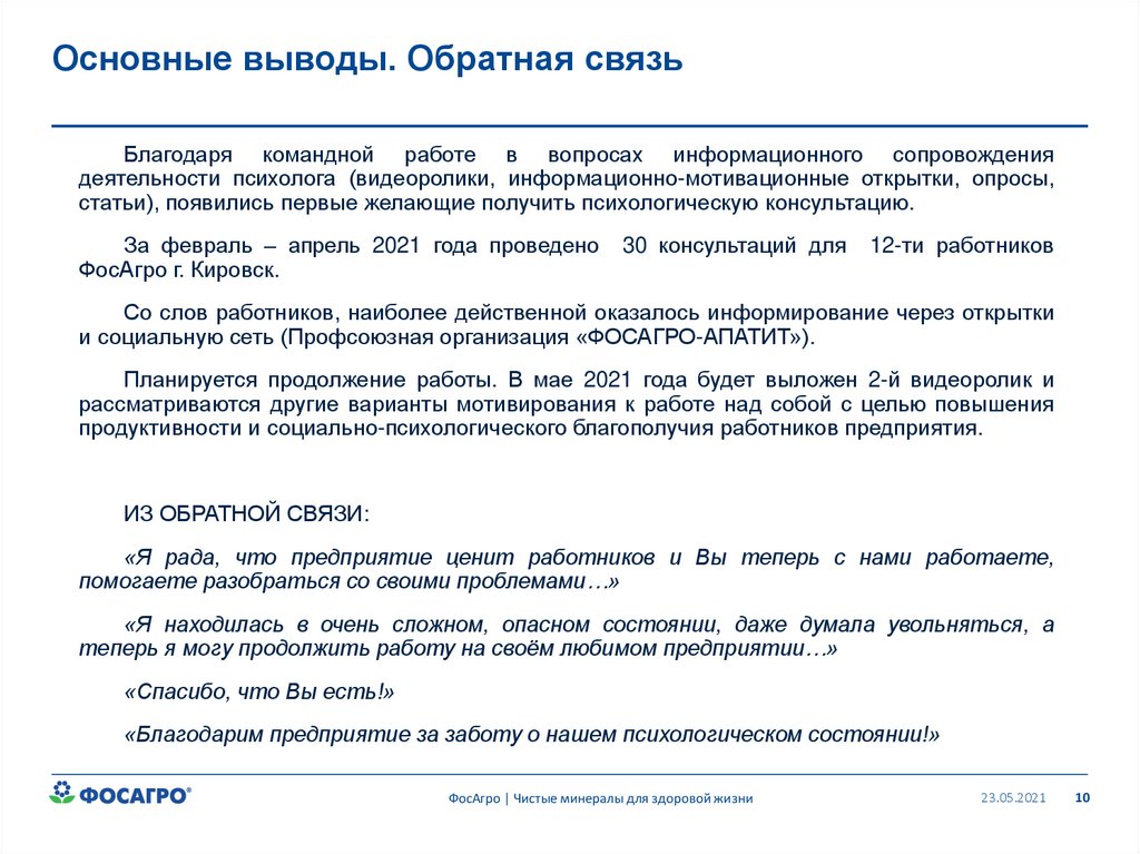 Интерес к деятельности психолога растёт. Работники предприятия обращаются, чтобы