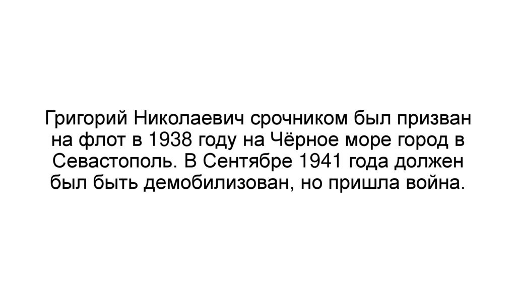 Григорий Николаевич срочником был призванна флот в 1938 году на Чёрное море город в