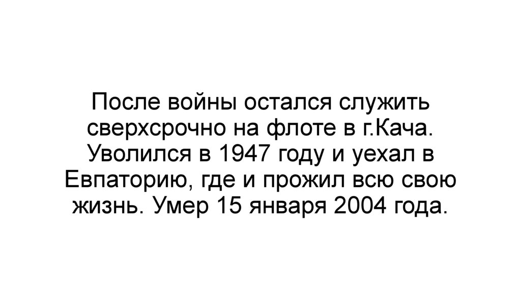 После войны остался служитьсверхсрочно на флоте в г.Кача.