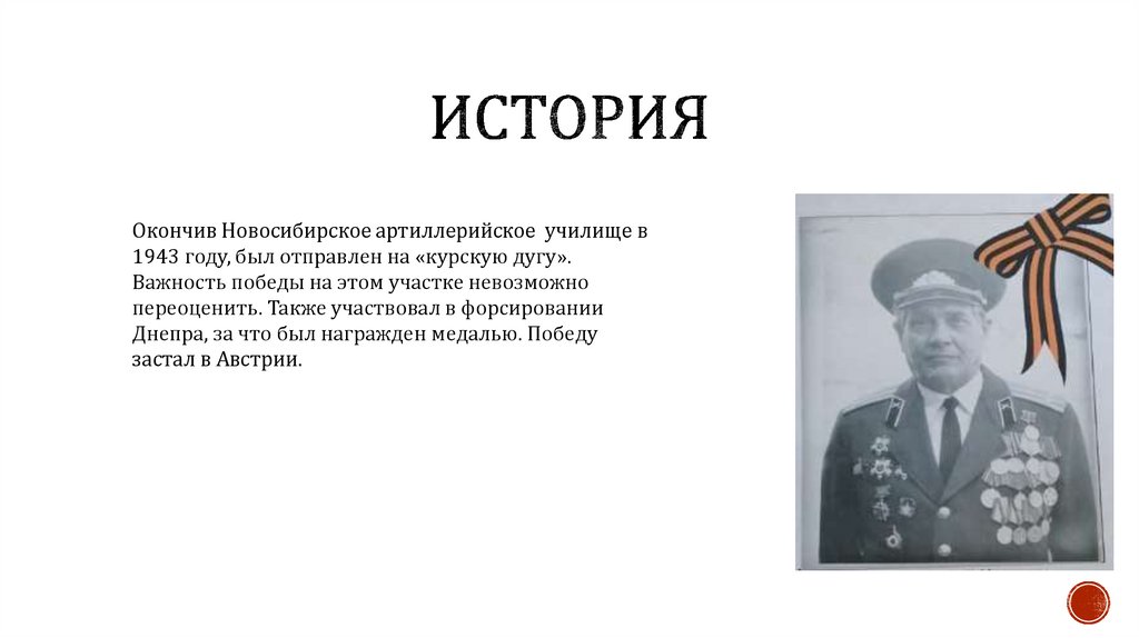 Окончив Новосибирское артиллерийское училище в1943 году, был отправлен на «курскую дугу».