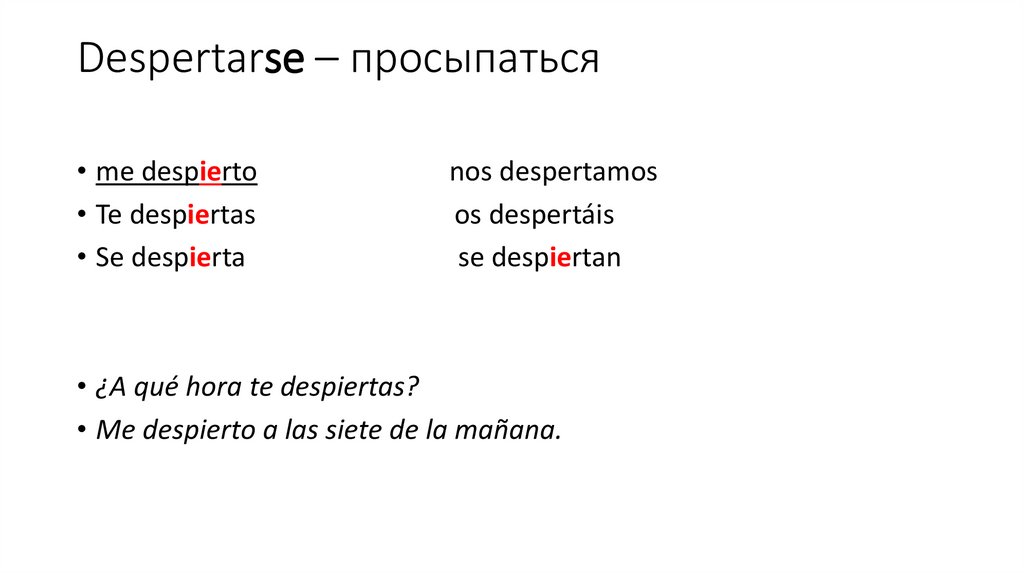 Despertarse – просыпаться• me despierto