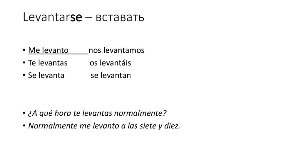 Levantarse – вставать• Me levanto