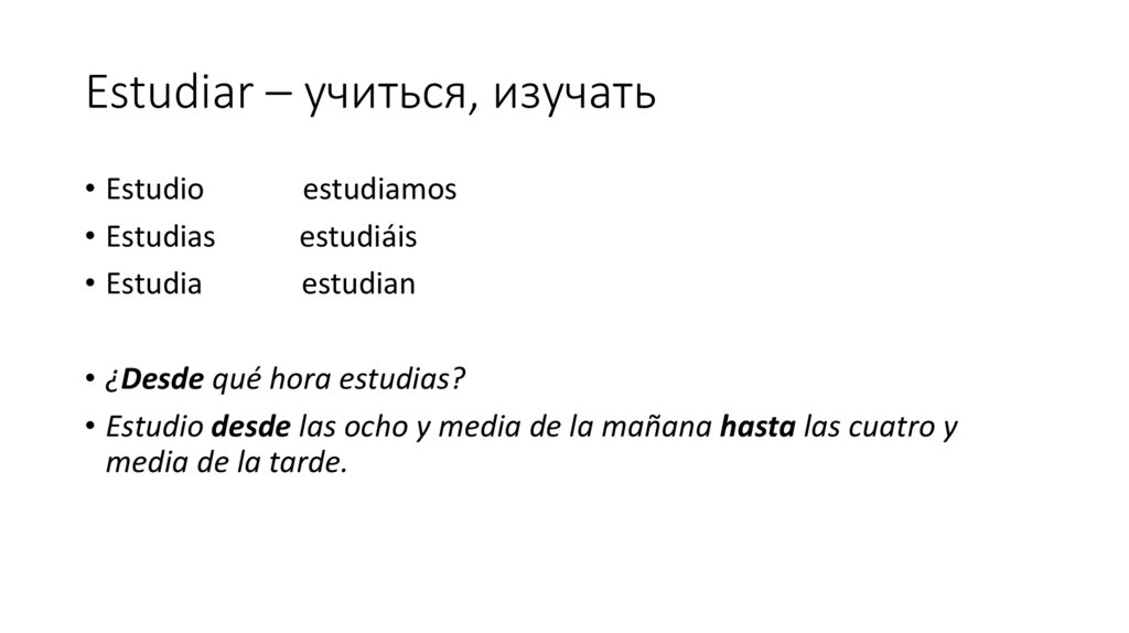 Estudiar – учиться, изучать• Estudio