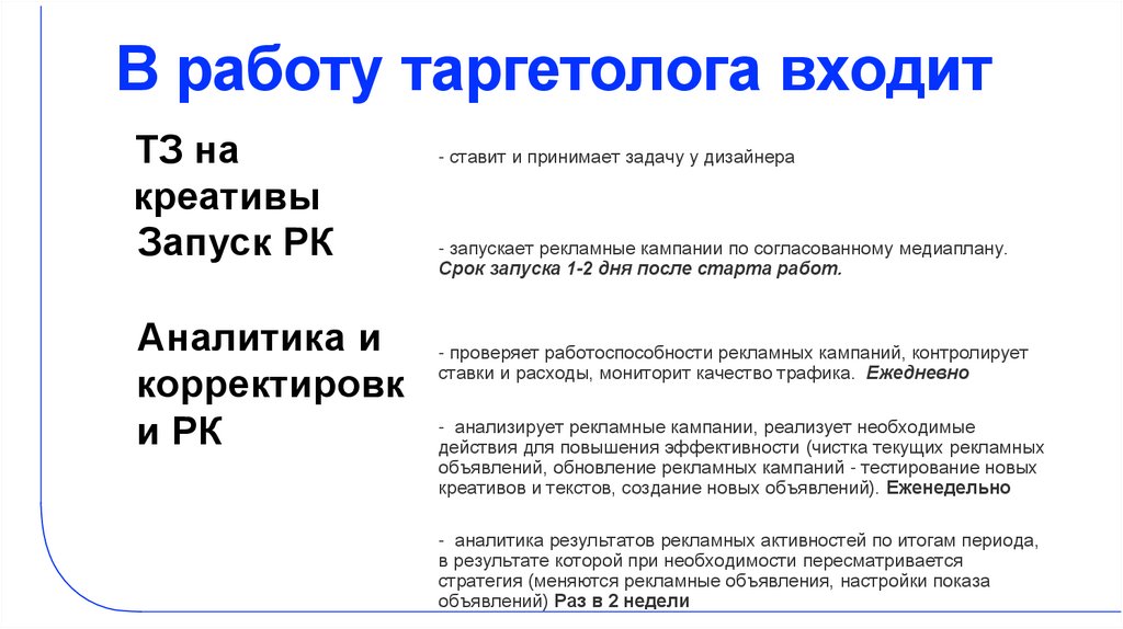 ставки и расходы, мониторит качество трафика. Ежедневно