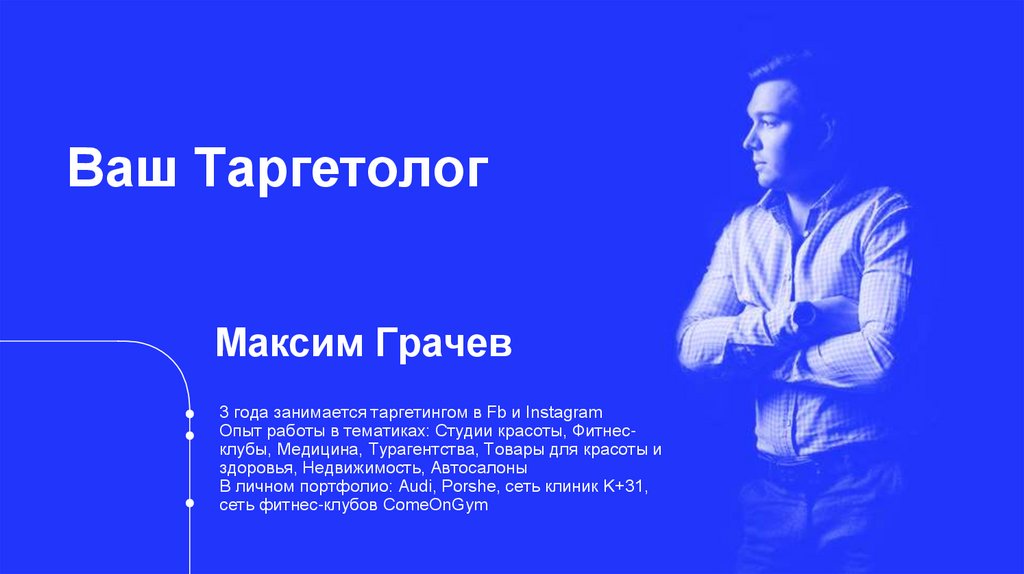 Опыт работы в тематиках: Студии красоты, Фитнесклубы, Медицина, Турагентства, Товары для красоты и