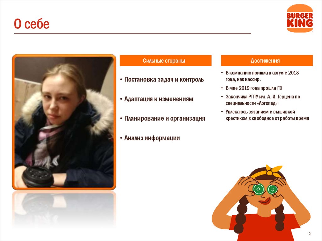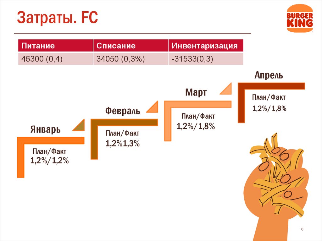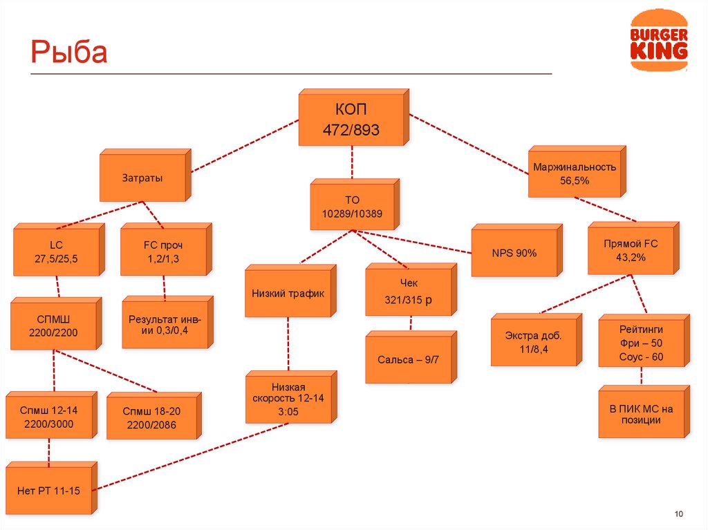 2) увеличение продаж фри/соус (с 50/60 до 55/65) путем отслеживания и предоставления ОС кассиру