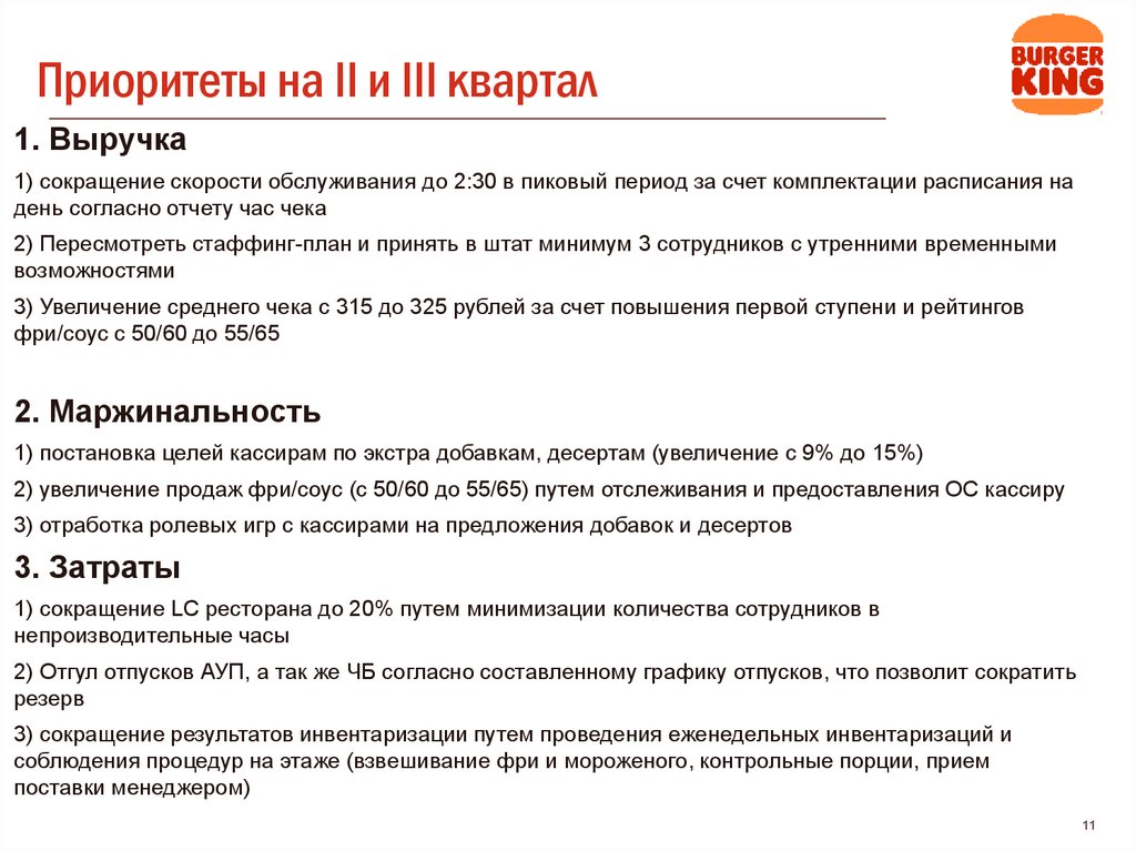 1) постановка целей кассирам по экстра добавкам, десертам (увеличение с 9% до 15%)