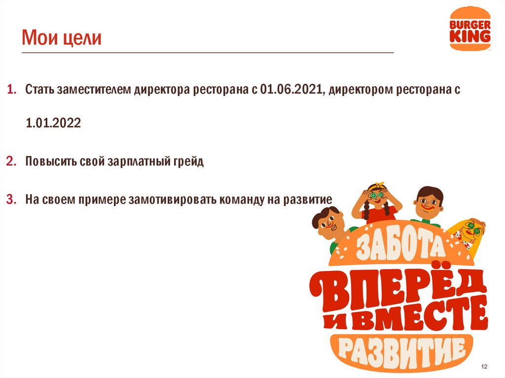 Мои цели1. Стать заместителем директора ресторана с 01.06.2021, директором ресторана с