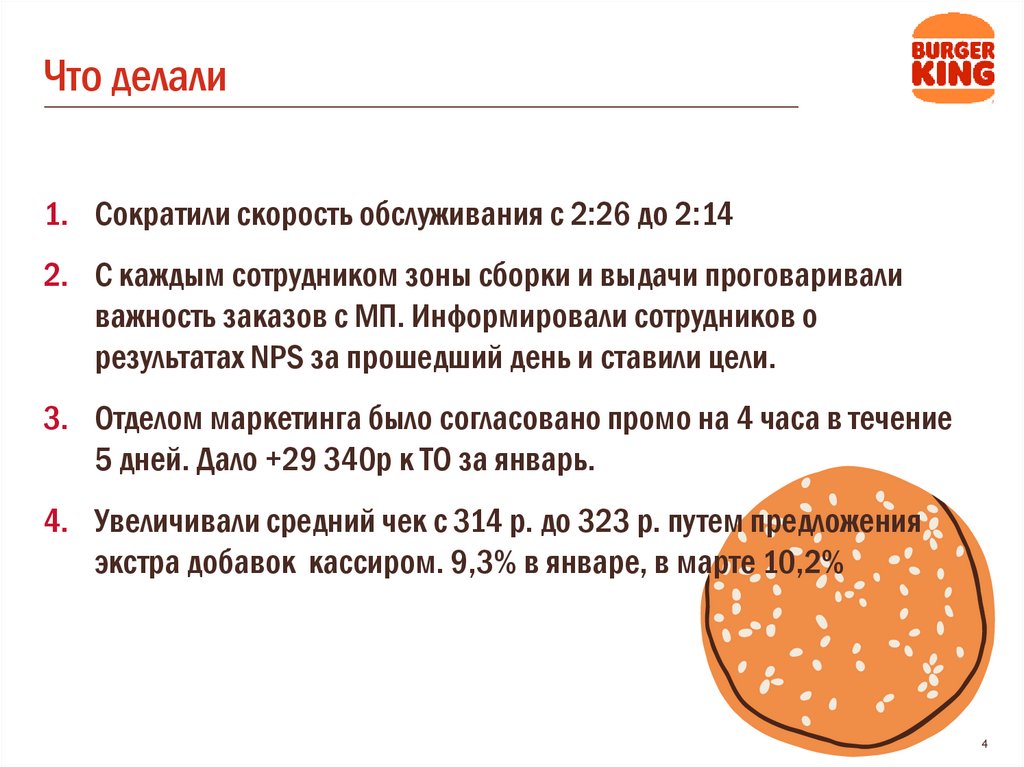 4. Увеличивали средний чек с 314 р. до 323 р. путем предложения