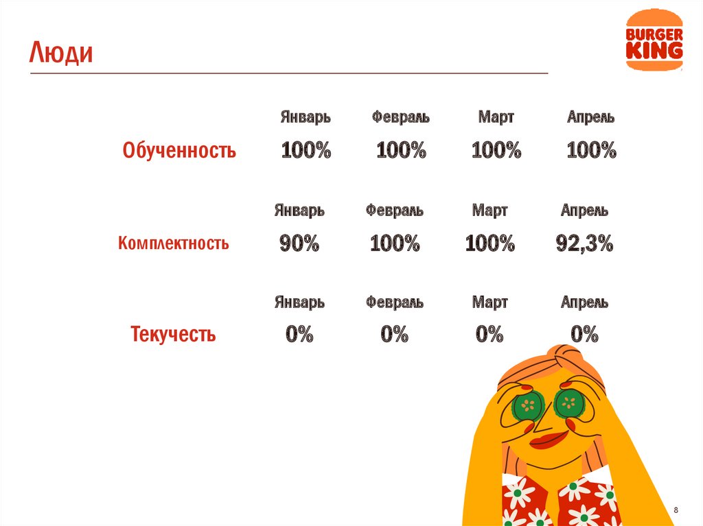соблюдения процедур на этаже (взвешивание фри и мороженого, контрольные порции, прием
