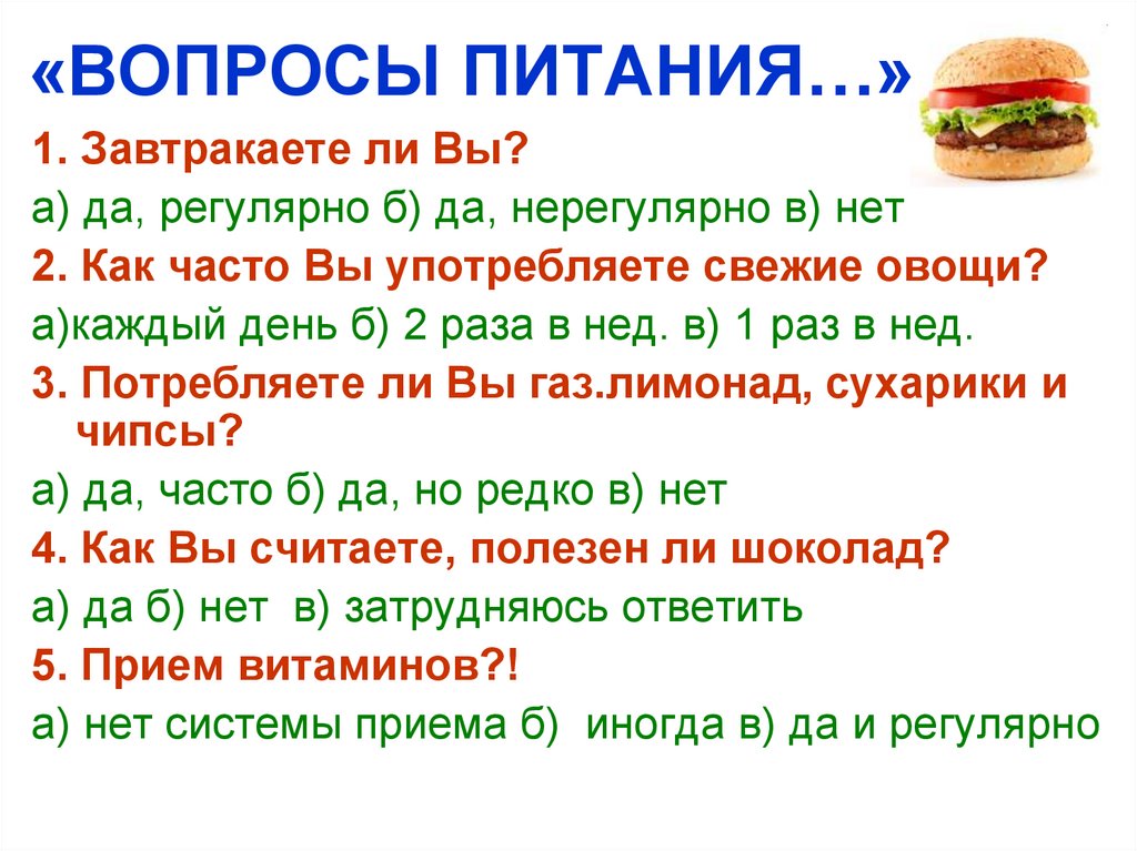 «ВОПРОСЫ ПИТАНИЯ…»1. Завтракаете ли Вы?