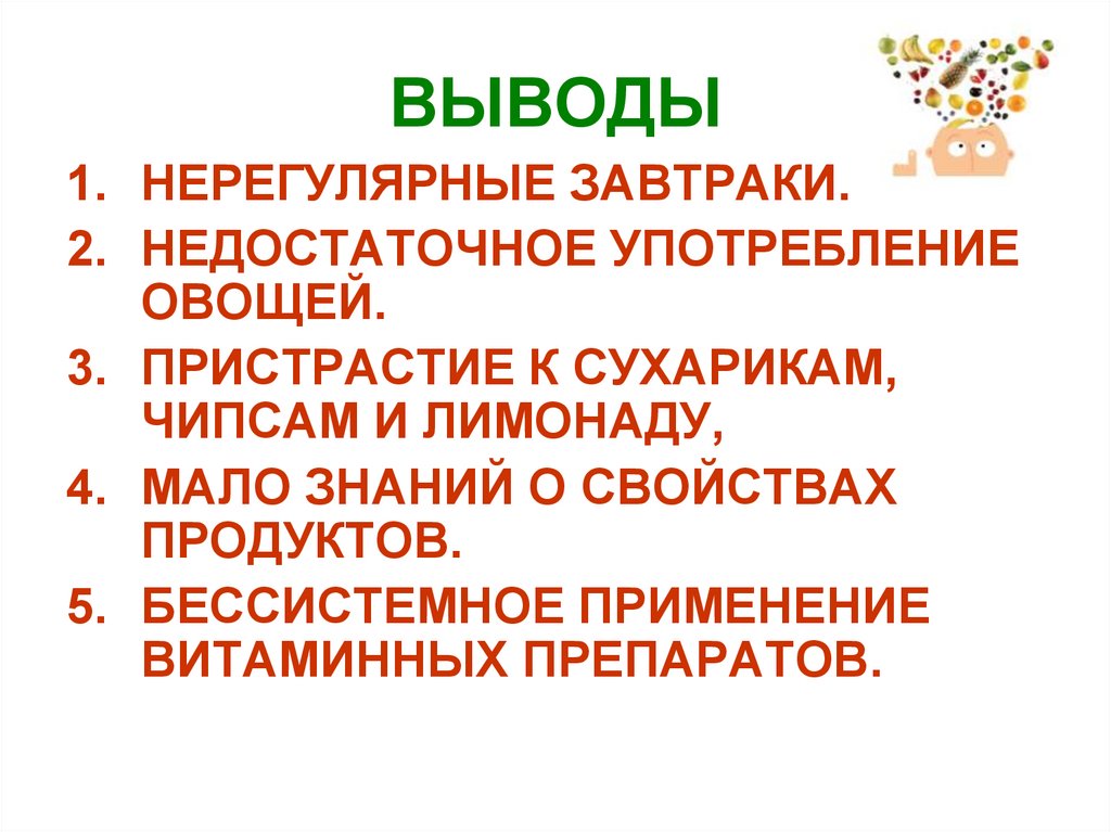 ВЫВОДЫ1. НЕРЕГУЛЯРНЫЕ ЗАВТРАКИ.