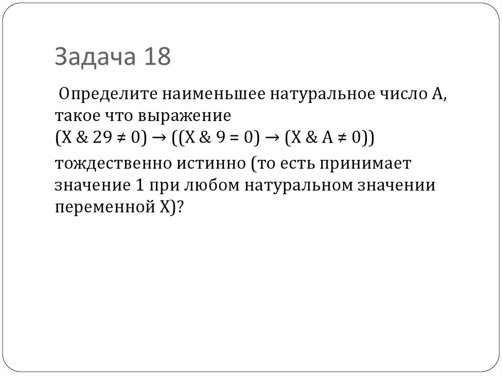 Задача 18Определите наименьшее натуральное число A,