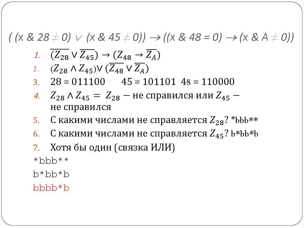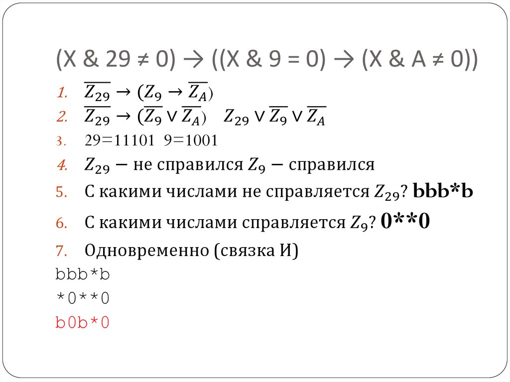 (X & 29 ≠ 0) → ((X & 9 = 0) → (X & A ≠ 0))