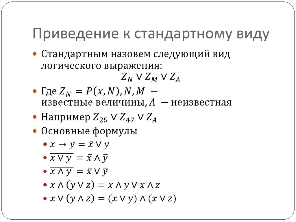 Приведение к стандартному видуСтандартным назовем следующий вид