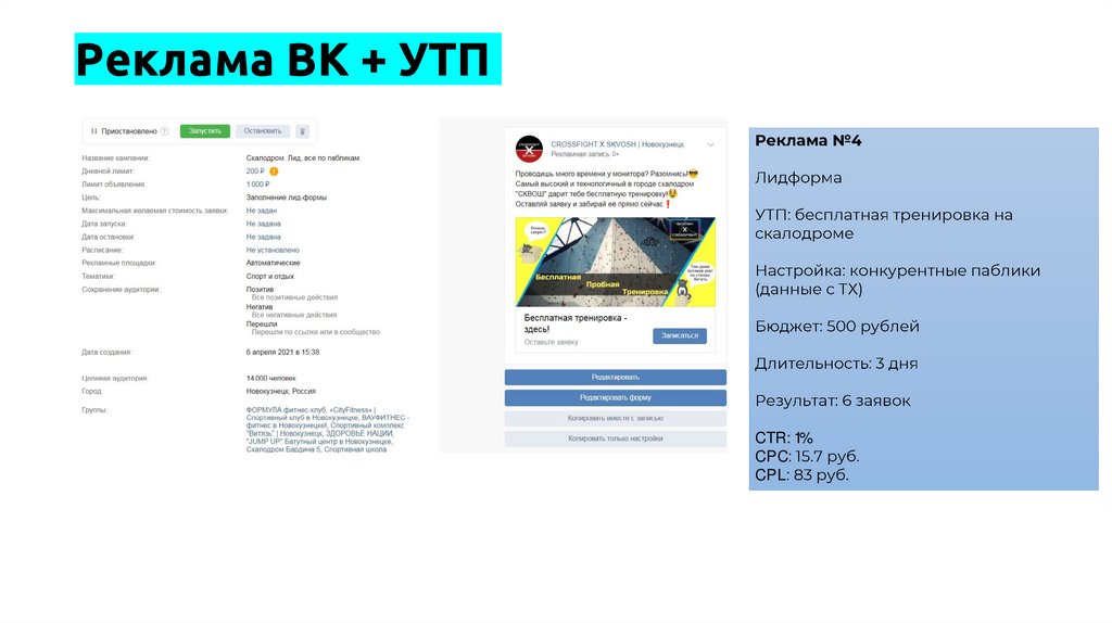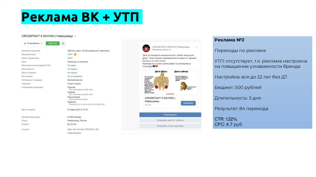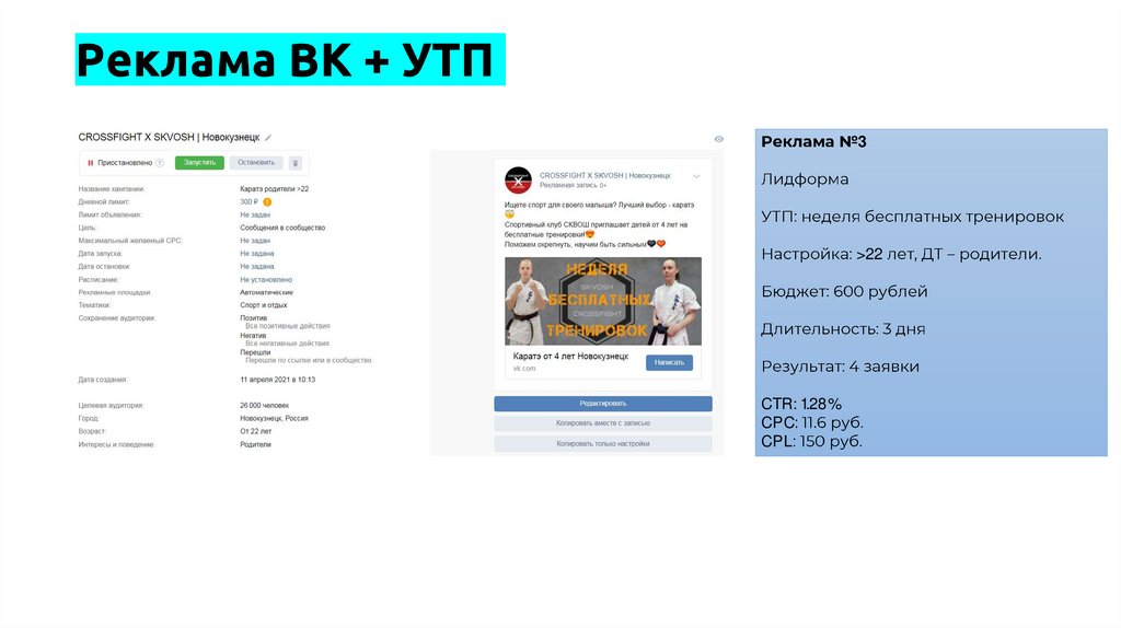 Реклама ВК + УТП2