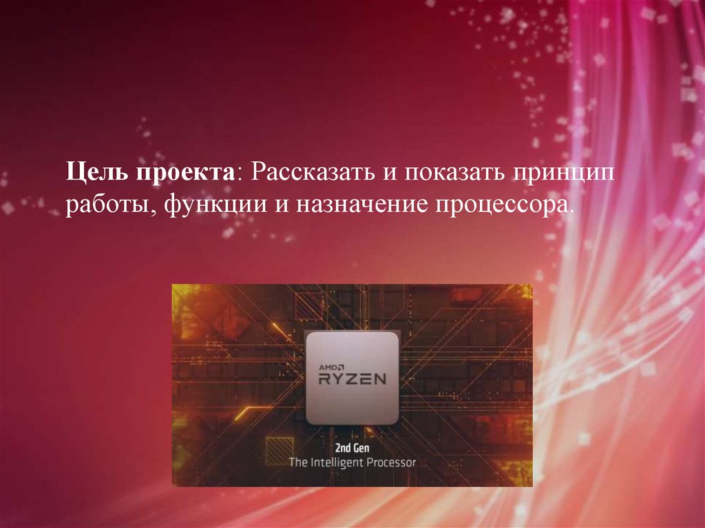 Цель проекта: Рассказать и показать принципработы, функции и назначение процессора.