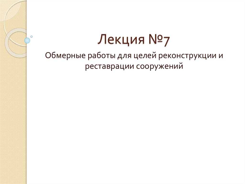 Обмерные работы для целей реконструкции и реставрации сооружений. Лекция тема 7