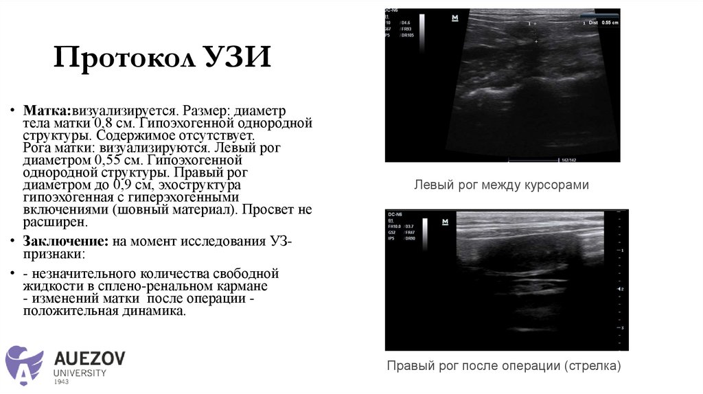 Протокол УЗИ• Матка:визуализируется. Размер: диаметр