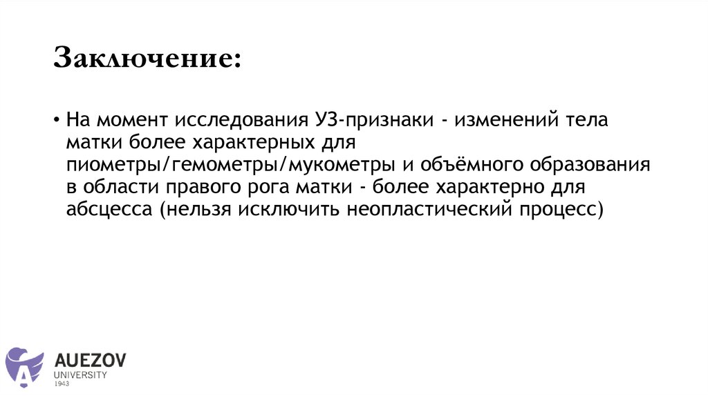 Заключение:• На момент исследования УЗ-признаки - изменений тела