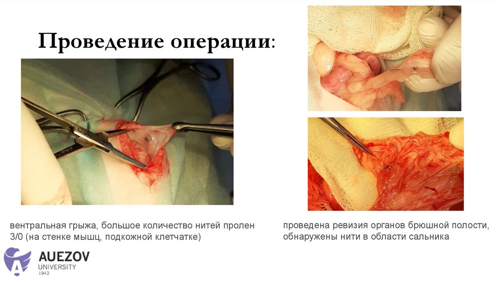 Проведение операции:вентральная грыжа, большое количество нитей пролен