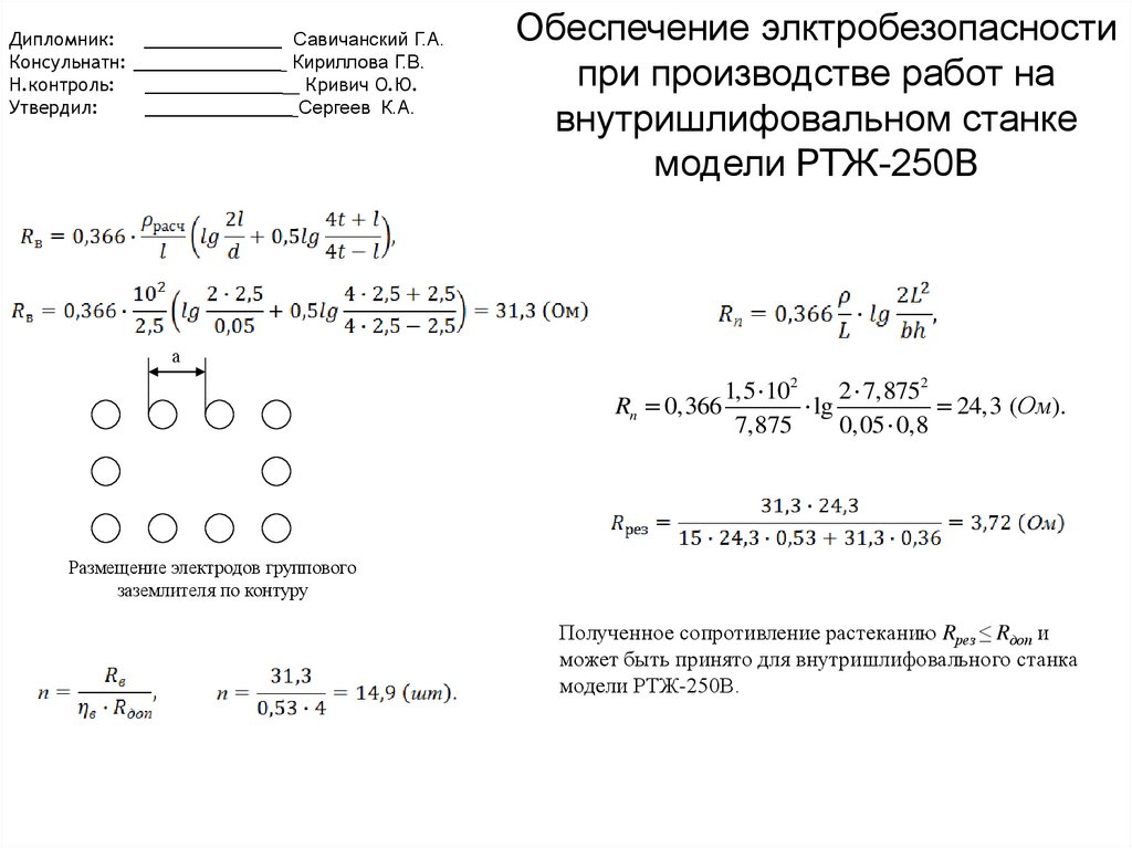 Полученное сопротивление растеканию Rрез ≤ Rдоп и