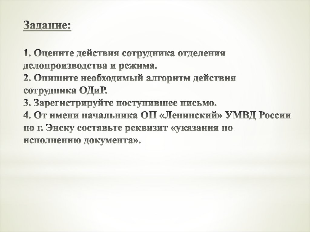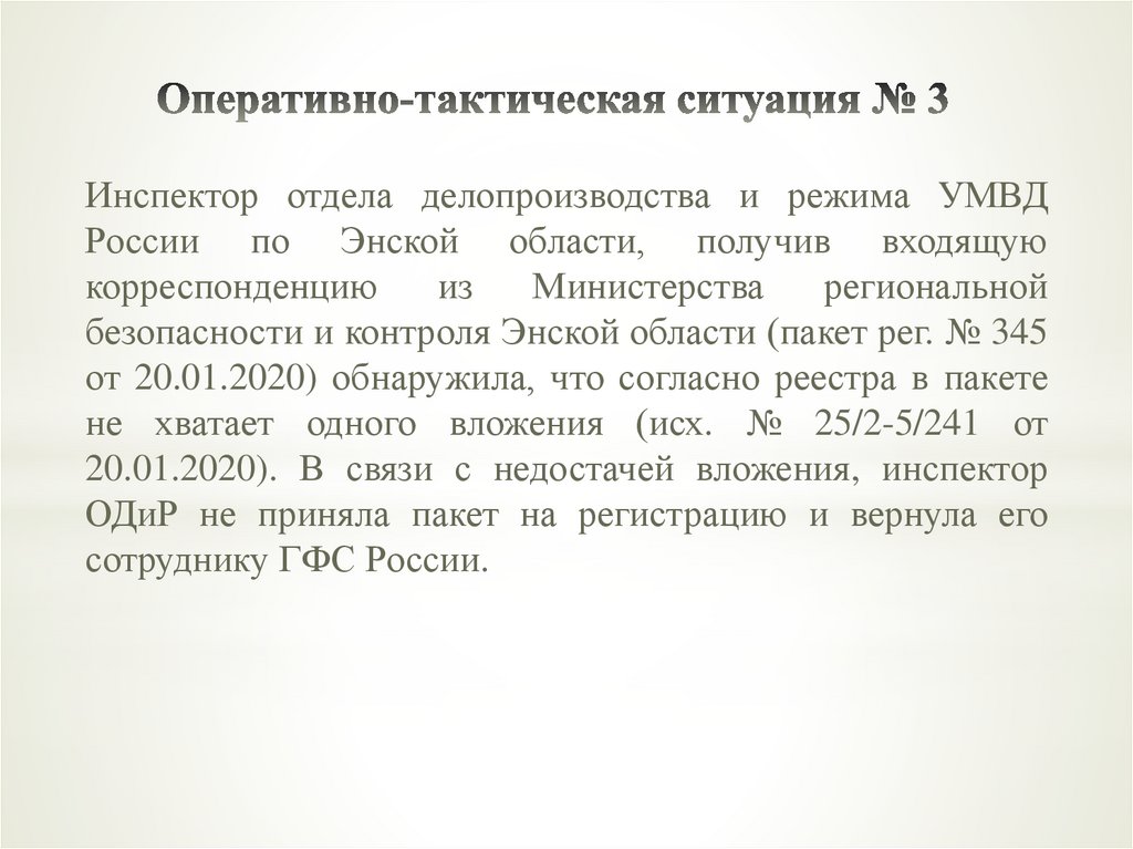 Инспектор отдела делопроизводства и режима УМВДРоссии по Энской области, получив входящую