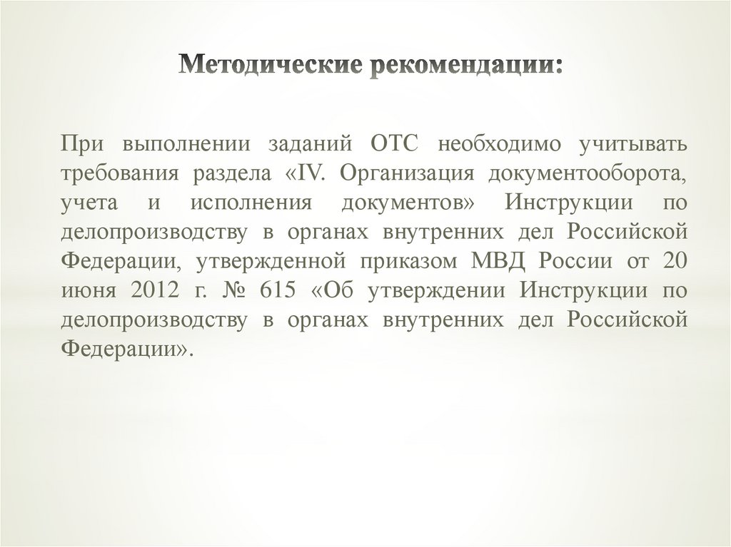 При выполнении заданий ОТС необходимо учитыватьтребования раздела «IV. Организация документооборота,