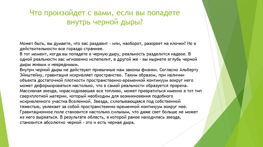 Что произойдет с вами, если вы попадетевнутрь черной дыры?