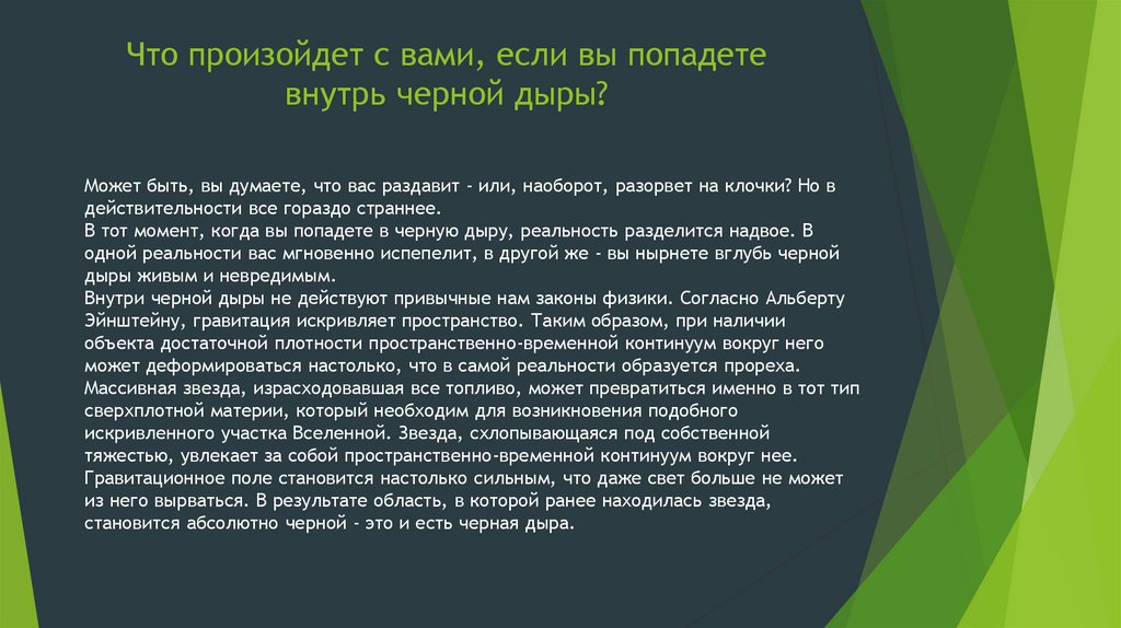 Внутри черной дыры не действуют привычные нам законы физики. Согласно Альберту