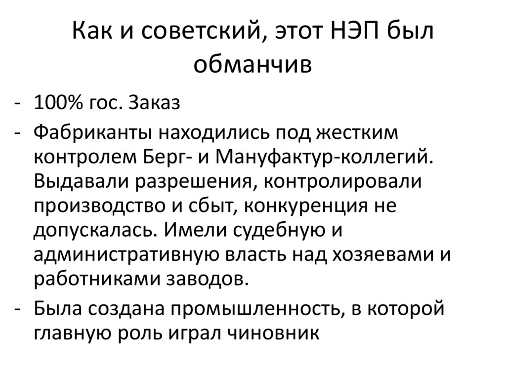 НЭП по-петровскиВ последние годы войны, когда уже не так