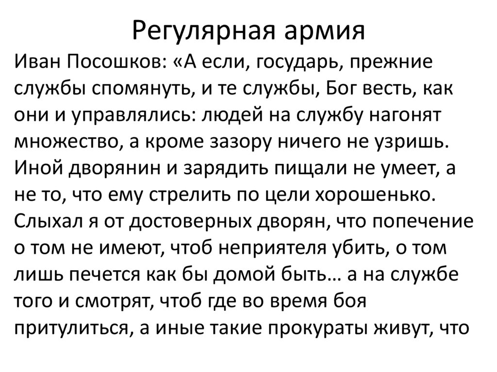 Регулярная армияИван Посошков: «А если, государь, прежние