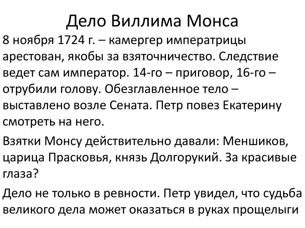 Дело Виллима Монса8 ноября 1724 г. – камергер императрицы