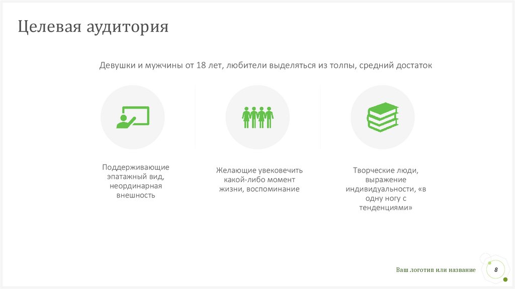 Целевая аудиторияДевушки и мужчины от 18 лет, любители выделяться из толпы, средний достаток