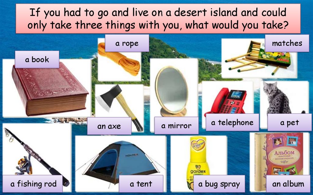 If you had to go and live on a desert island and couldonly take three things with you, what would you take?