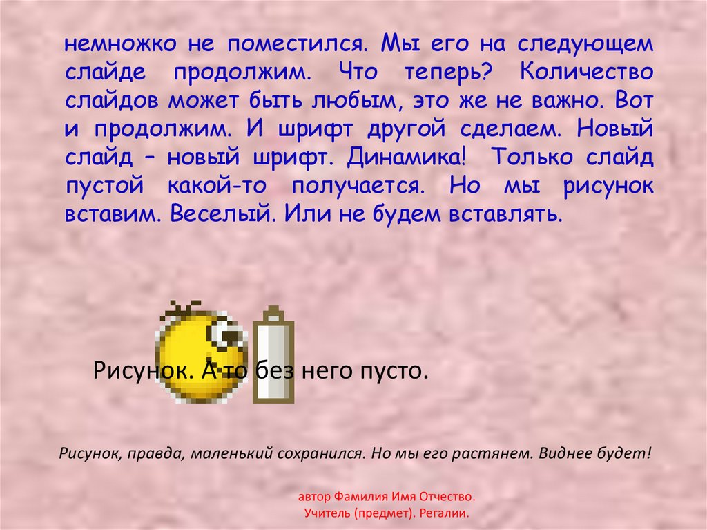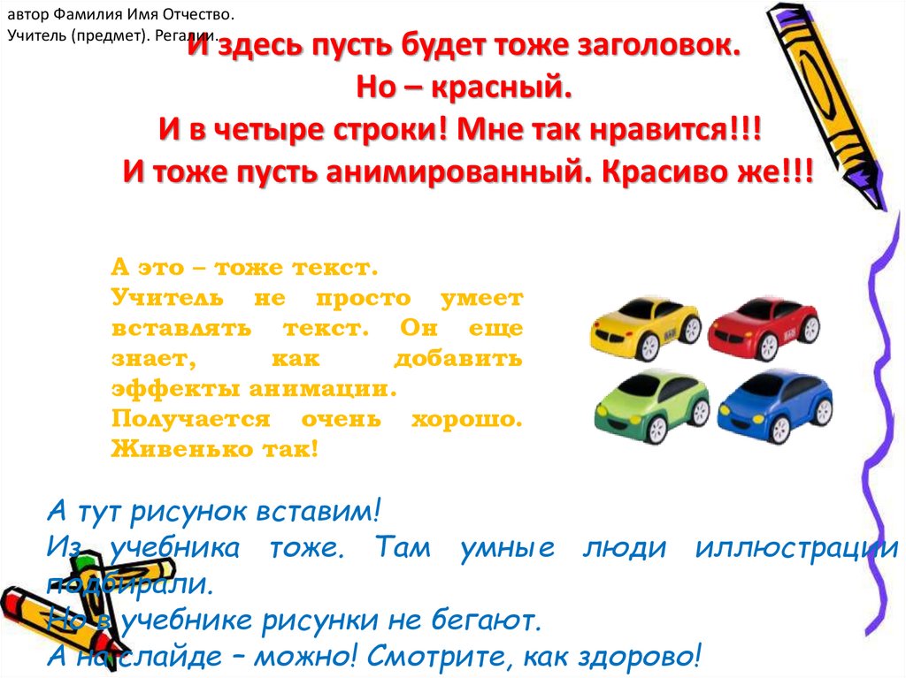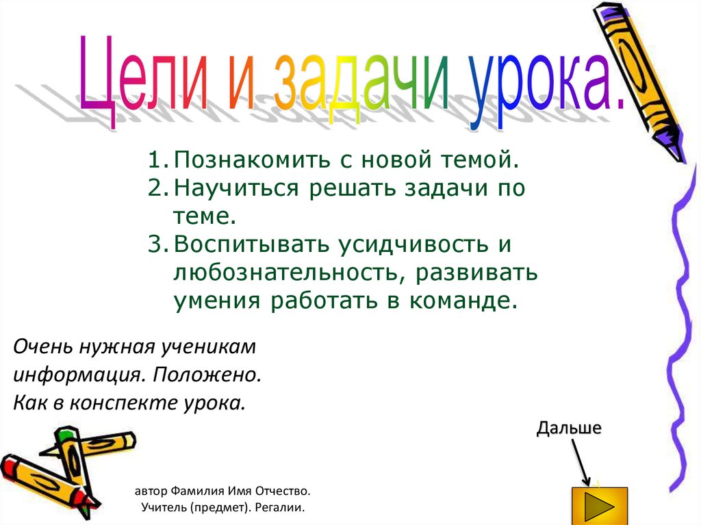 автор Фамилия Имя Отчество. Учитель (предмет).
