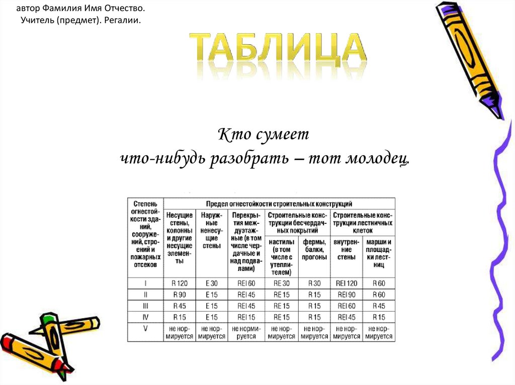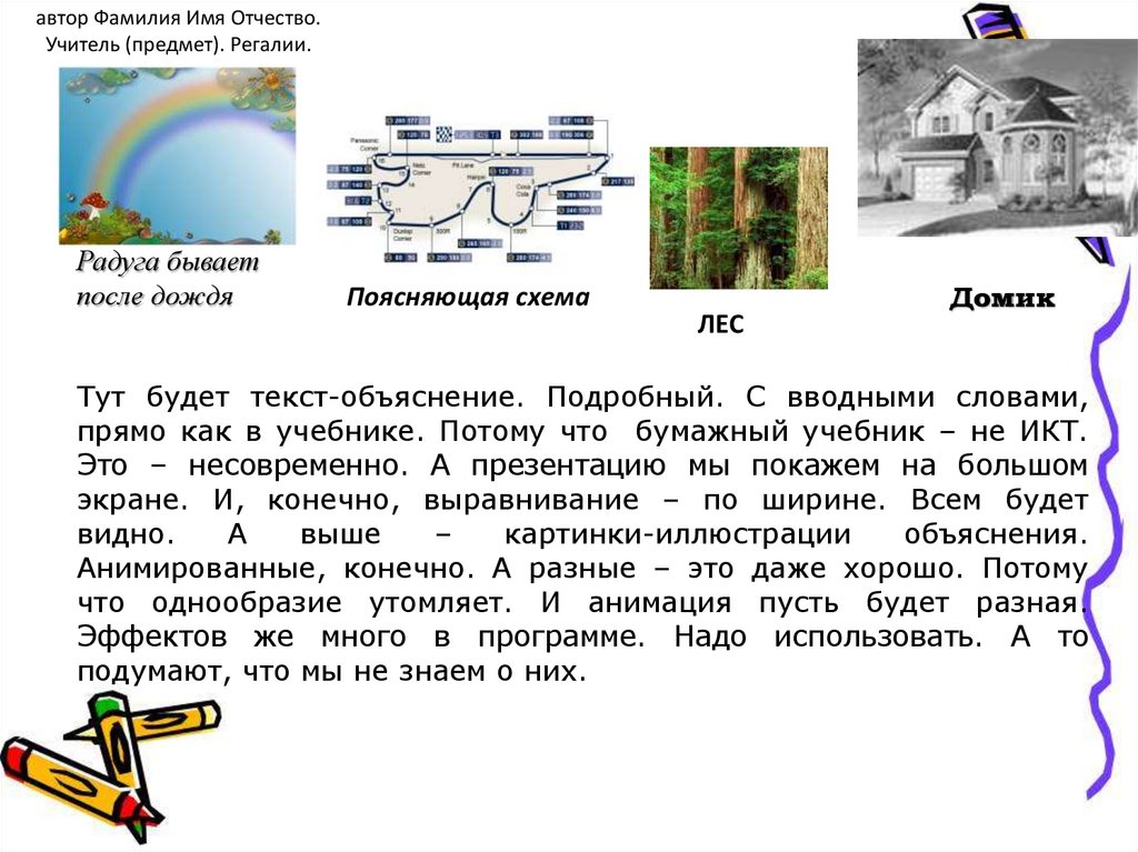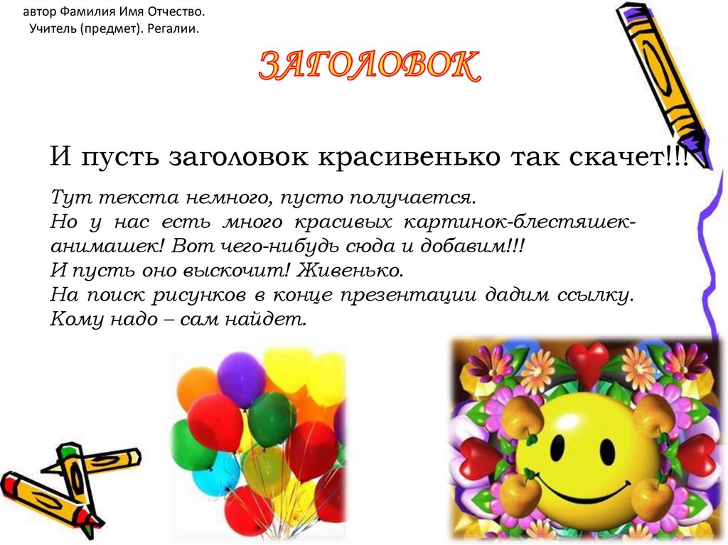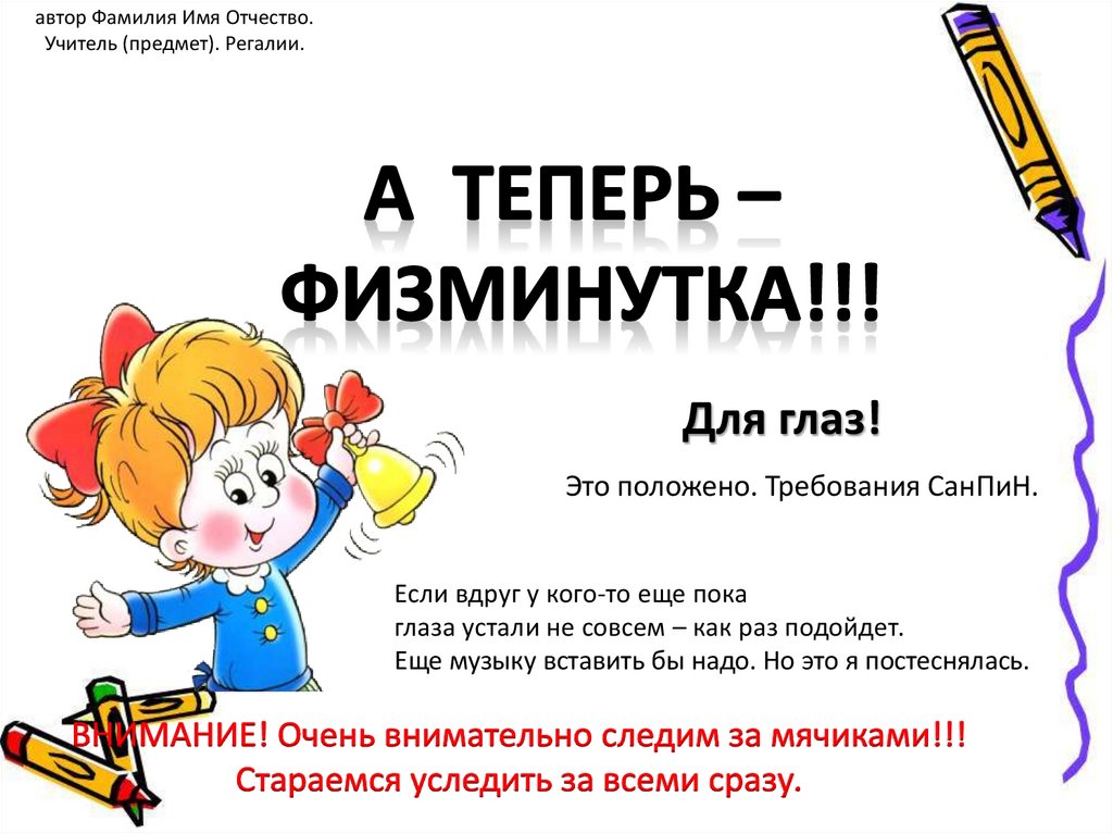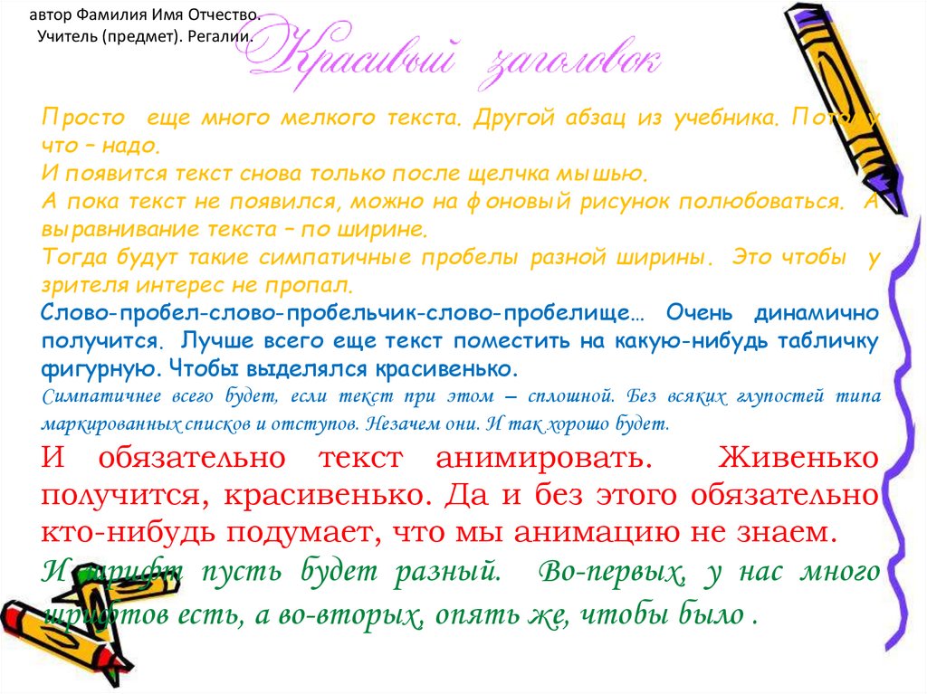 автор Фамилия Имя Отчество.Учитель (предмет). Регалии.