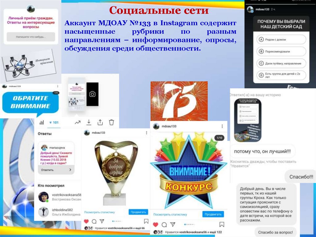 Социальные сетиАккаунт МДОАУ №133 в Instagram содержит