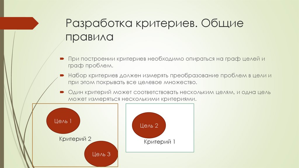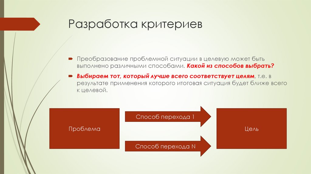 Разработка критериевПреобразование проблемной ситуации в целевую может быть
