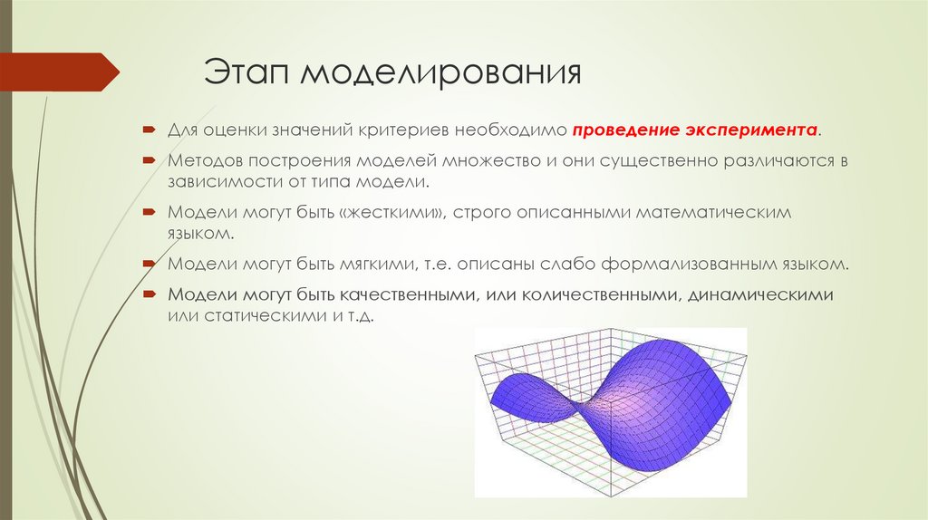 Этап моделированияПри этом инструментарий построения модели существенно зависит от ее