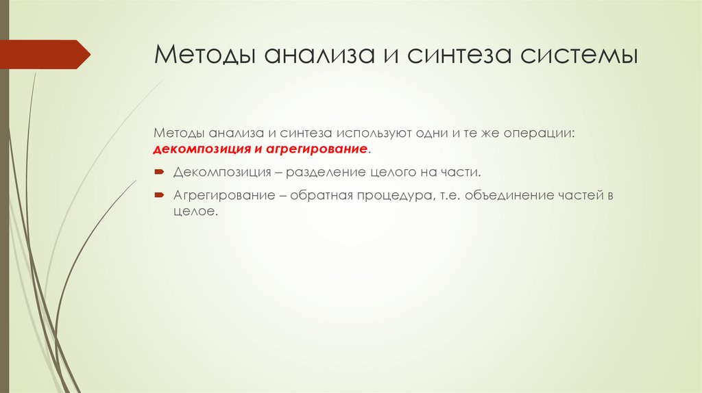 Методы анализа и синтеза системыМетоды анализа и синтеза используют одни и те же операции: