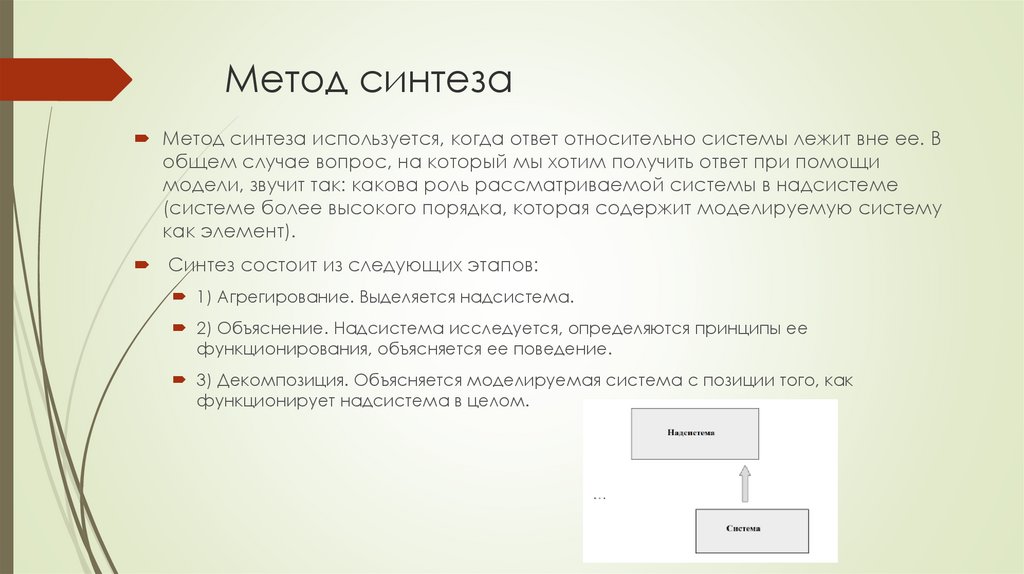 Метод синтезаМетод синтеза используется, когда ответ относительно системы лежит вне ее. В