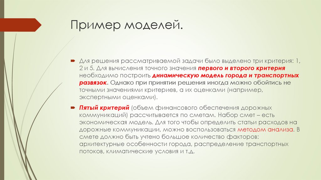 Пример моделей.Для решения рассматриваемой задачи было выделено три критерия: 1,