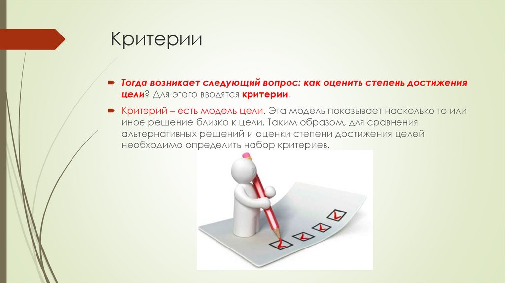 Критерий – есть модель цели. Эта модель показывает насколько то или