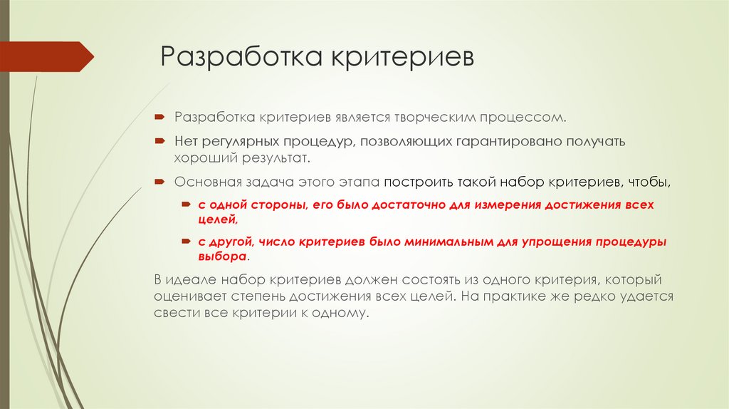 Основная задача этого этапа построить такой набор критериев, чтобы,