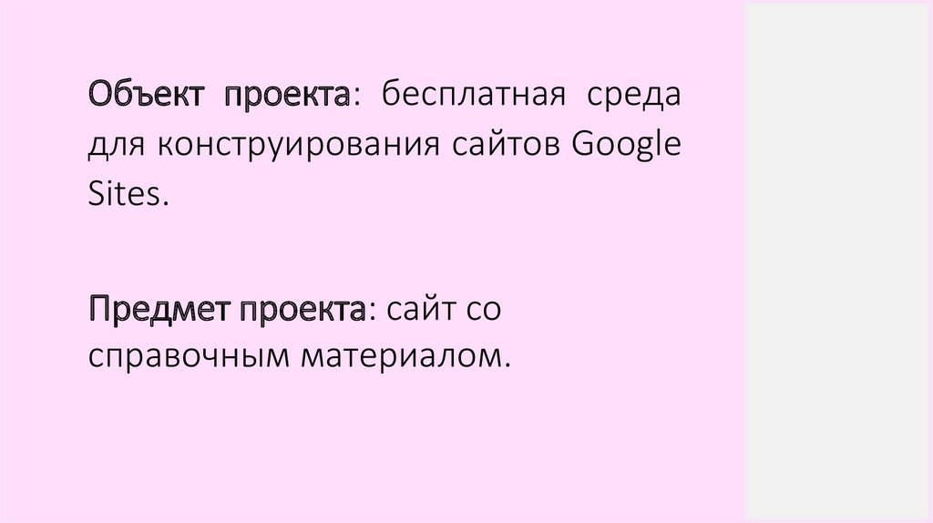 Объект проекта: бесплатная средадля конструирования сайтов Google
